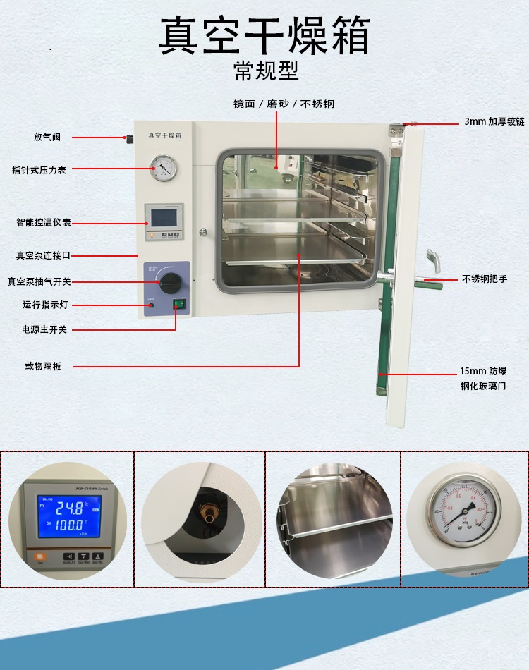 采用進口激光、數(shù)控加工設(shè)備生產(chǎn)的產(chǎn)品,供工礦企業(yè)、化驗室、科研單位等做干燥、烘培熔蠟、脫泡用。