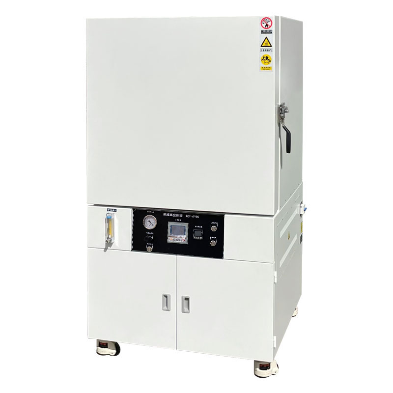 真空烘箱是將干燥物料處于負(fù)壓條件下進行干燥的一種箱體式干燥設(shè)備。它是利用真空泵進行抽氣抽濕,使工作室內(nèi)形成真空狀態(tài),降低水的沸點,加快干燥的速度,用作粉末干燥、材料退火處理、半導(dǎo)體處理、新能源電池試驗、航天部件封裝試驗、電子產(chǎn)品生產(chǎn)過程中脫泡、脫水,硬化干燥等。廣泛用于電子化學(xué)、農(nóng)業(yè)科研、環(huán)境保護等研究領(lǐng)域。